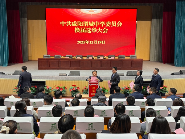 2025年12月19日下午,中共咸陽渭城中學委員會換屆選舉大會在我校崇德樓朝語大劇院隆重召開。大會圓滿完成各項議程,選舉產生了新一屆黨委委員。大會由校黨委書記王明果主持。