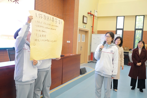 在觀點展示環節,各小組代表依次登臺,自信陳述集體智慧。李美霞老師對內容進行專業剖析與情緒共鳴,劉靜珍老師則從成長型思維角度進一步拓展引導,幫助學生識別問題本質、探索突破路徑,掌握可執行的成長策略。