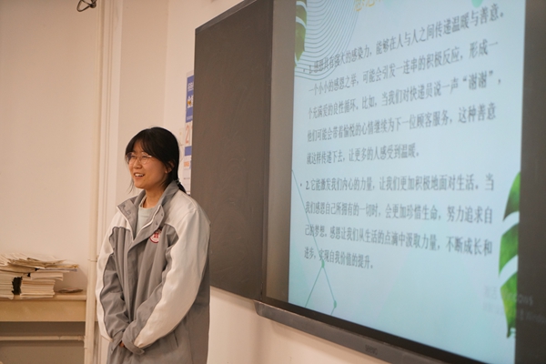 班會現(xiàn)場氣氛真摯而熱烈。同學(xué)們踴躍走上講臺,結(jié)合自身成長經(jīng)歷,用質(zhì)樸的語言表達對父母、老師和同學(xué)的感謝。一段段真實的成長故事,一次次真誠的情感流露,引發(fā)了全班的深深共鳴。班主任適時引導(dǎo),鼓勵學(xué)生將感恩之情轉(zhuǎn)化為學(xué)習(xí)動力和文明修養(yǎng),以更積極的心態(tài)迎接成長中的挑戰(zhàn)。