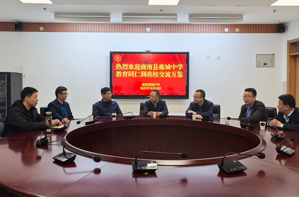 2025年10月18日上午,商南縣鹿城中學副校長黃毓、教務處副主任黨廣武、電教中心副主任熊濤及化學骨干教師白世強一行,赴咸陽渭城中學開展教育教學交流活動。咸陽渭城中學相關領導熱情接待并全程陪同。