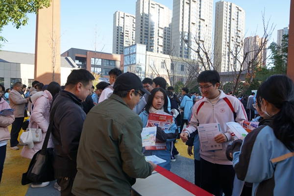 在櫻花廣場設置的高校咨詢專區,氣氛熱烈而有序。各高校招生教師通過發放資料、現場答疑等方式,圍繞學生關注的學習規劃、錄取政策、專業前景等問題進行了細致解答。學生們積極溝通、理性咨詢,展現出清晰的學業認知與積極的未來姿態。